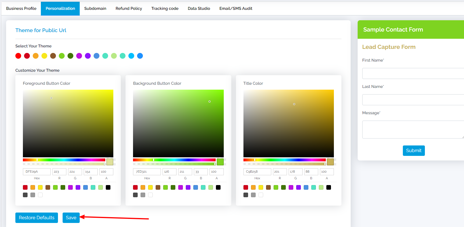 Click on "Save" to save the personalization if you are satisfied with the new theme, it can be previewed at the right corner of the page.