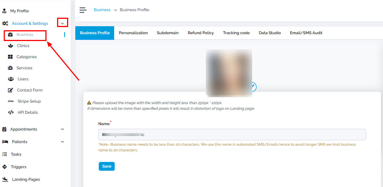 Login to your Growth99+ account and open the "business" page under the menu "Account & Settings".