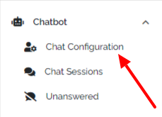 Using your login credentials access the admin panel of your Growth99+ business account. Click on the ”Chat Configuration” in the drop-down menu of the “Chat Bot” feature.