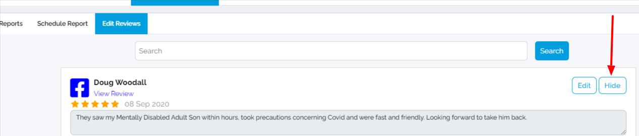 Click the "Hide" button as shown below if you wish to hide a review.