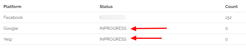 As soon as you click on "FETCH LATEST REVIEWS", the status will show as "INPROGRESS" as shown below. It will take about an hour or so to fetch all the reviews depending upon the number of reviews you have.