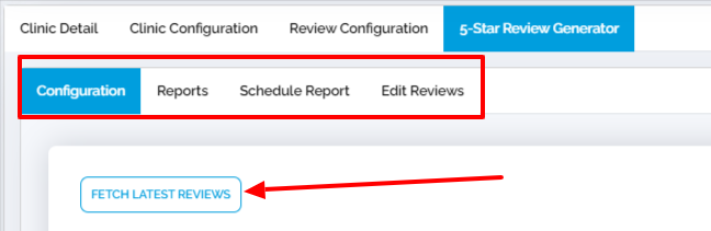 Click on the "5-Star Review Generator" tab on the clinic page