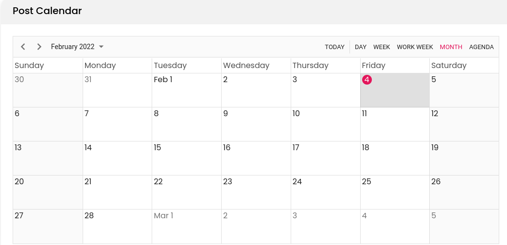 A page displaying the calendar of the ongoing month is visible on the screen. Select a date in the future for which you want to add a post and double click on it. Refer to the below image to know how the calendar appears.