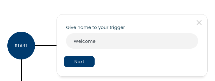 The "Start" option displays a data field where you can enter the name you wish to give to the trigger. After you type a suitable name for your trigger click on the "Next" button present below. Refer to the below image. The first in the series of emails you can send your new lead could be an impressive welcome mail.