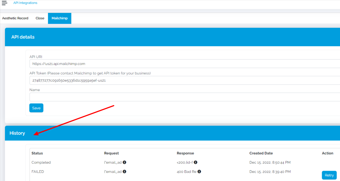 After you save the details, whenever you get any lead, it will be sent to your Aesthetic Record, and it will be shown in the “History” below.