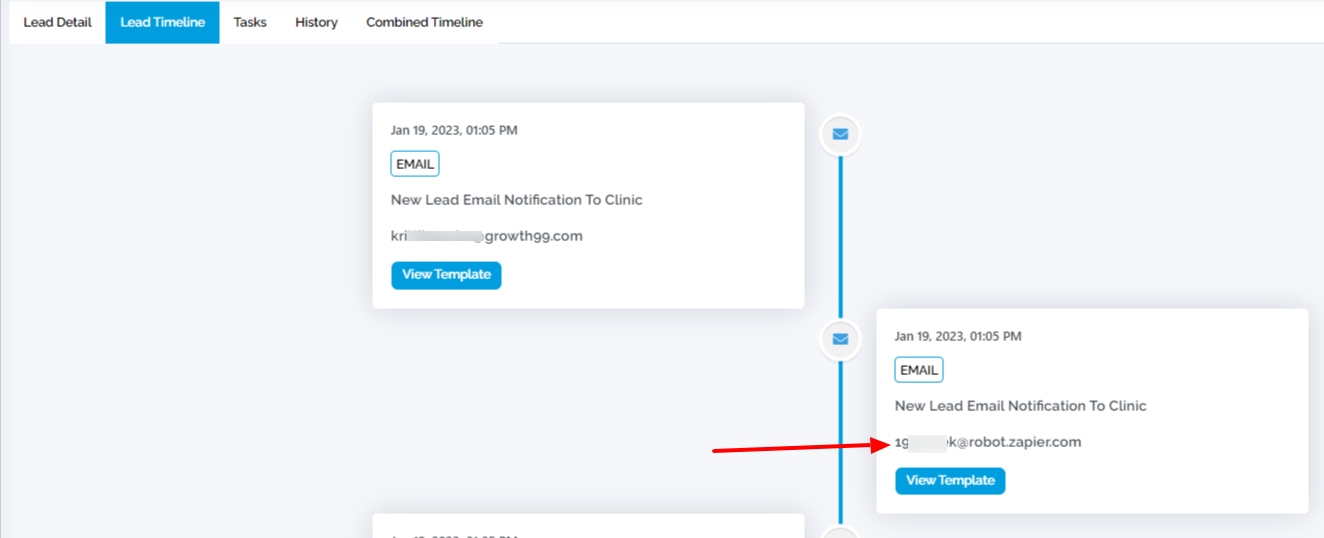 To check the lead timeline, go to the "Leads" section and click on the test lead you just added. there go to the "Lead Timeline" tab beside "Lead details".